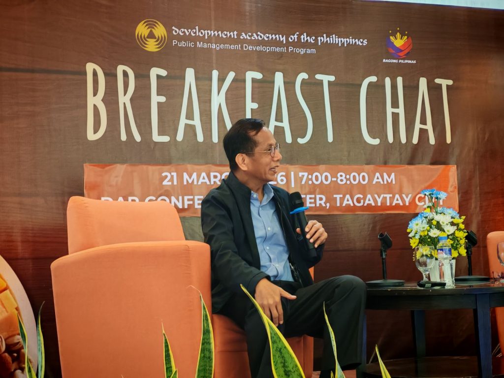 TAGAYTAY CITY, Cavite, 21 March 2026 — The Development Academy of the Philippines (DAP), through its Public Management Development Program (PMDP), conducted a Breakfast Chat with Department of Economy, Planning, and Development Secretary Arsenio M. Balisacan. Set in the cozy ambience, the Middle Managers Class Batch 37 scholars had an in-depth conversation focused on Philippine Economic Performance, Recovery, and Reform Priorities for 2026-2026, emphasizing the scholars’ part in achieving such.